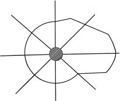 Затем на ситуационном плане от промплощадки завода наносят 8 румбов и по направлению, противоположному каждому румбу, откладывают скорректированную величину l с учетом масштаба плана.