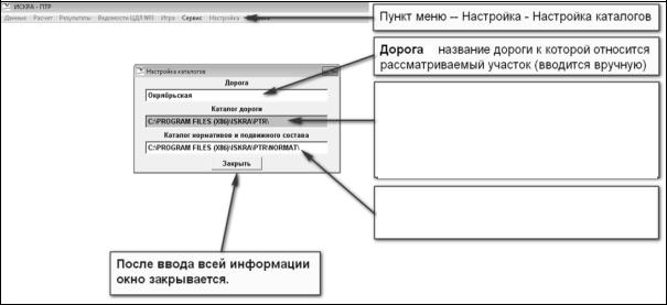 Далее открываем Настройку каталогов и заходим в Дорогу щелчком левой клавиши мыши в соответствующем окне. Появится курсор. Следует написать название дороги, например: «Октябрьская ж. д.».