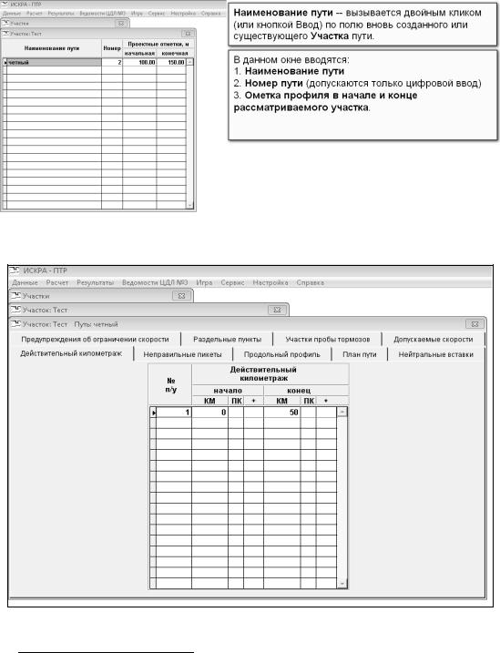 После заполнения строки нажимаем клавишу [Еnter], открывается окно данного участка и таблица с характеристикой путей. Создаем строку ([Alt]+[A]), вводим наименование пути («1 нечетный» или «2 четный»). Нажимаем клавишу [Еnter] (рис. 40).