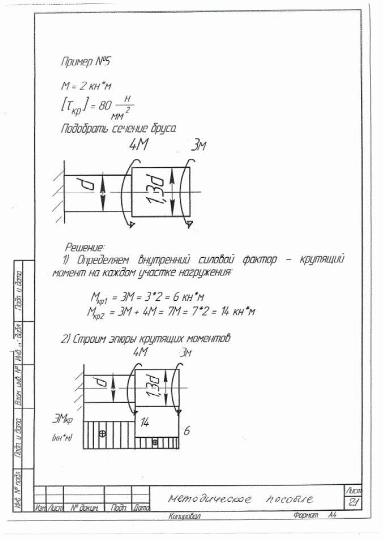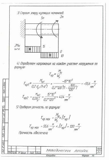 Задача 3. Исходя из результатов решения первой и второй задач определить основные размеры вала.