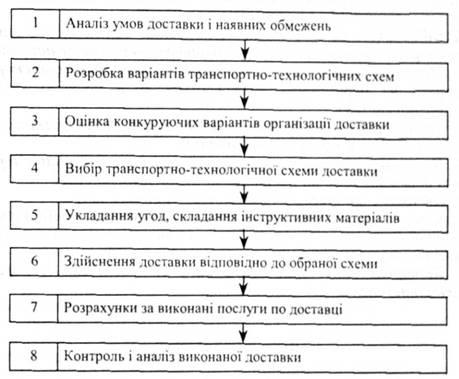Транспортно-технологічна схема доставки товару включає в себе ряд етапів, найважливіші з яких: