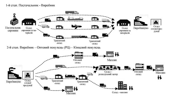 Процес просування матеріального потоку від постачальника до споживача достатньо складний (рис. 9.1), тривалий і потребує координації та взаємодії учасників і належної організації.