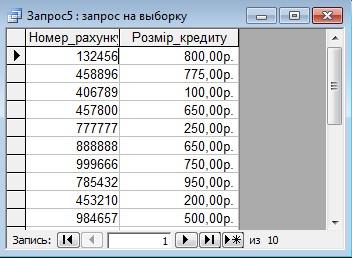 SELECT [Вкладники банку].Номер_рахунку, [Вкладники банку].Розмір_кредиту