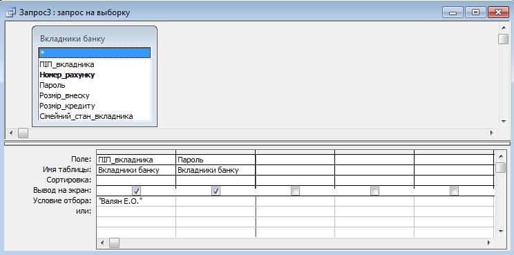 WHERE ((([Вкладники банку].ПІП_вкладника)="Валян Е.О."));