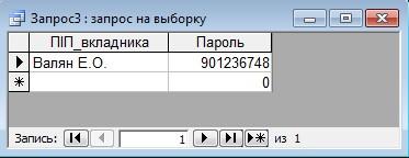 Запит №3. Вивести пароль даного вкладника.