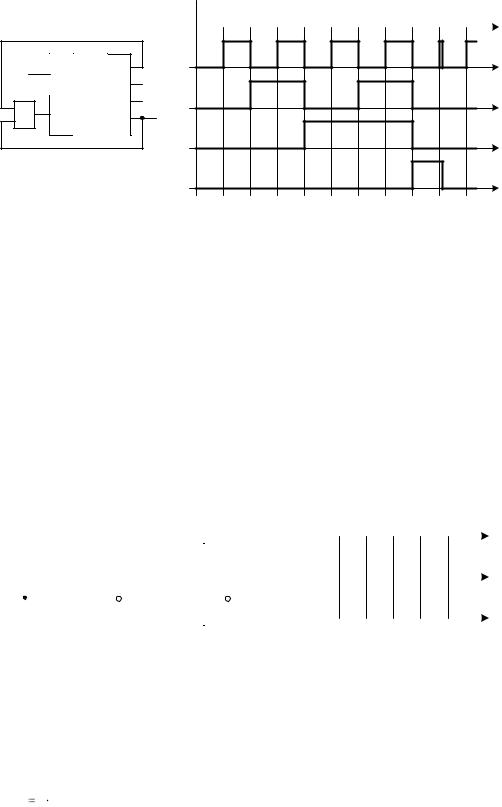 Рис. 1.23. Логическая схема (а), временные диаграммы сигналов трехразрядного кольцевого синхронного счетчика