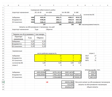 Решение сформулированной задачи целочисленного линейного программирования осуществляется с использованием средства "Поиск решения" пакета MS Excel методом "ветвей и границ".