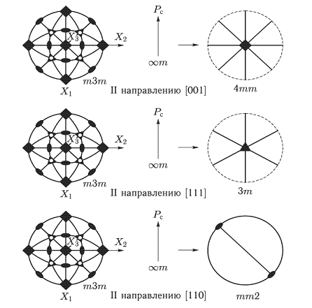 кубической группы, то симметрия кристалла понизится до группы mm2. И, наконец,