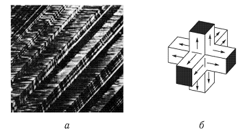 доменной структуры (а) и схема упаковки доменов (б) кристаллов титаната бария