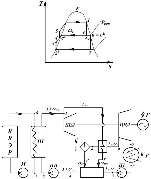 Рис. 16. Цикл ПТУ на насыщенном паре с сепарацией