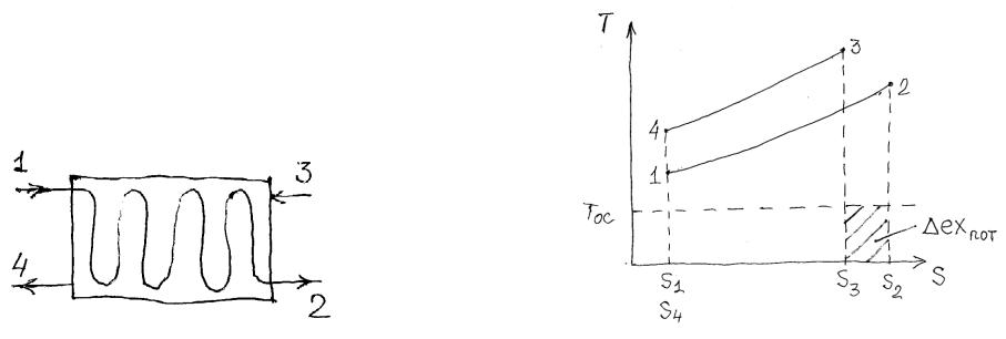 exохл = ex4 – ex3 = h4 – h3 – TОС·(s4 – s3) = |