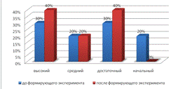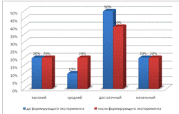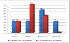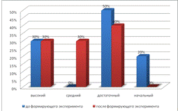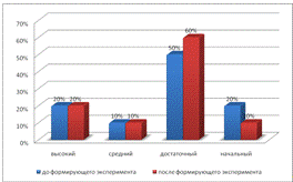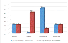 В контрольной группе изменения коснулись среднего и достаточного уровня. В то время как в экспериментальной группе изменился