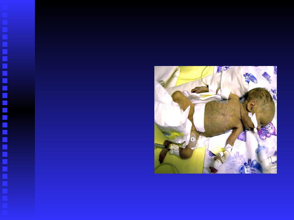 Загальний вигляд: блідість, мармуровість шкіри, сіруватий або жовтяничний її відтінок. Здутий живіт, розширена венозна сітка, набряки передньої черевної стінки, гепатомегалія, ділянки склереми. Страждальницький вираз обличчя, млявість або збудженість.