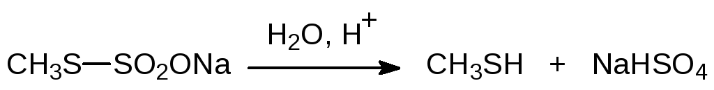 Полученные соли моноэфиров тиосерной кислоты (их иногда называют солями Бунте) гидролизуются в присутствии кислот с образованием алкантиолов: