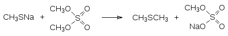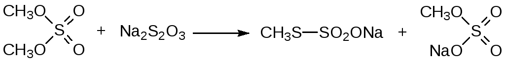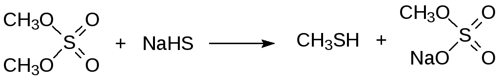 Эта реакция сопровождается образованием значительного количества диметилсульфида в результате алкилирования диметилсульфатом соли образовавшегося метилмеркаптана: