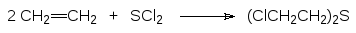 К олефиновым двойным связям присоединяются и хлориды серы. Так, например, один из способов получения 2,2´-дихлордиэтилсульфида, использовавшегося в качестве боевого отравляющего вещества под названием иприт, горчичный газ и др., представлен реакцией дихлорида серы с этиленом: