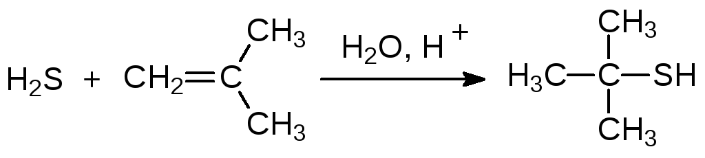 Олефины, легко образующие карбокатионы, присоединяют сероводород в присутствии кислот: