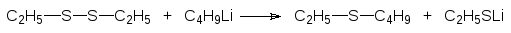 В реакцию с металлорганическими соединениями вступают дисульфиды, легко образующиеся из тиольных соединений при окислении, при этом в качестве окислителя может выступать даже кислород воздуха. В качестве примера можно привести получение несимметричных тиоэфиров в результате взаимодействия диэтилдисульфида с литийорганическим соединением: