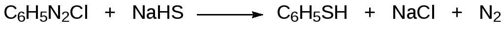 Еще один способ получения тиофенолов основан на реакции солей арилдиазония с гидросульфидом натрия, например: