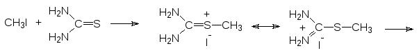Тиолы образуются также при щелочном гидролизе тиурониевых солей, которые получаются при алкилировании тиомочевины алкилгалогенидами: