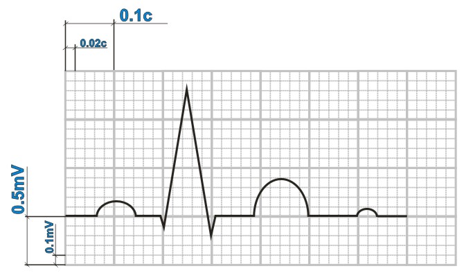 оценка проводимости. Для правильного учета проводимостиучитывают скорость записи. Для оценки проводимости измеряют: длительность зубца P (отражает скорость проведения импульса по предсердиям), в норме до 0.1 c. длительность интервала P - Q (отражает скорость проведения импульса от предсердий до миокарда желудочков); интервал P - Q =(зубец P) + (сегмент P - Q).