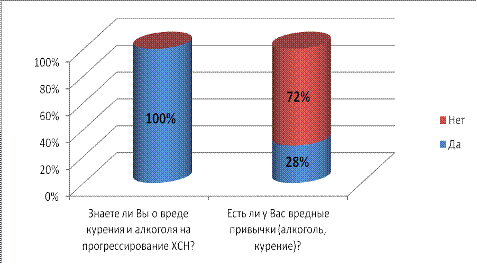 все 100% опрошенных знают о вреде курения и алкоголя на прогрессирование ХСН.