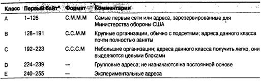 обычные IP-адреса, а классы D и Е применяются при групповой адресации и в