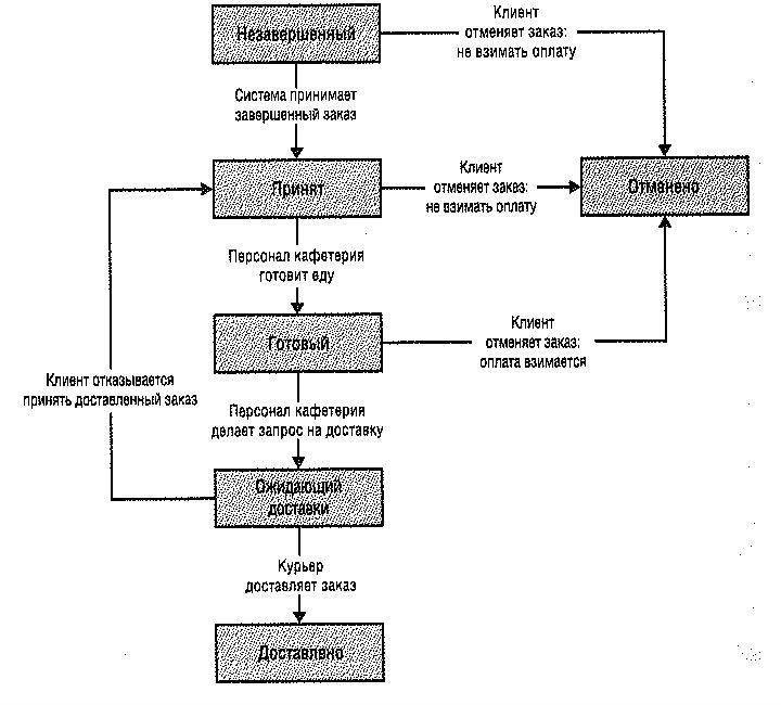 На рис. 3 показана диаграмма состояний, где отображено возможное состояние заказа блюд и его возможные изменения.