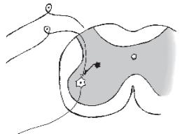 спинним мозком; 2 — мо- 2 тонейрон у передніх рогах сірої речовини; 3 — гальмівний нейрон, аксон якого утворює синапс на пресинаптичній терміналі аксона сенсорного нейрона