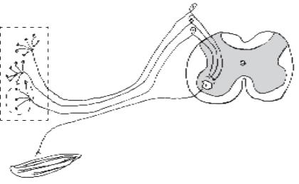 Рис. 16. Схема рефлекторної дуги спінального рефлексу: 1 — периферійний відділ — рецептори, це закінчення дендритів первинних сенсорних нейронів: