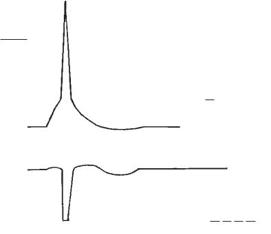 ють однофазний або двофазний ПД. При одночасному розташуванні електродів спочатку реєструється МПС. При диполярному відведенні спочатку немає відмінності потенціалів, тобто неушкоджена і незбуджена тканина, відповідно до І закону електрофізіології, є ізопотенціальною. Після нанесення подразнення і появи збудження виникає негативність спочатку під одним електродом, а потім, оскільки збудження поширюється, — під другим. Реєструється двофазний ПД.