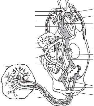 Від плаценти артеріальна кров надходить до організму плода непарною веною пуповини (рис. 29). Частина її одразу потрапляє до печінки, що забезпечує інтенсивний розвиток цього органа. Пройшовши пе-