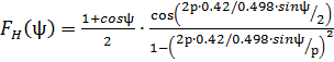 половинной мощности, т.е. при F(ψ) = 0.707).