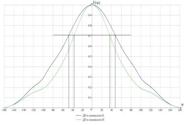 Оценим ширину диаграммы направленности Δψ0 в обеих плоскостях (ширина ДН определяется на уровне