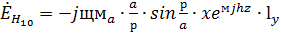 Мощность излучения равна среднему потоку мощности волны H10 через поперечное сечение волновода