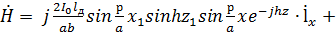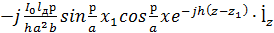 Используя (3.1) (3.2) (3.3), запишем выражения для комплексных амплитуд вынужденного ЭМП волны типа H10. В данном случае нас будет интересовать только поле в переднем полупространстве волновода, т.е. при z>z1