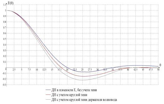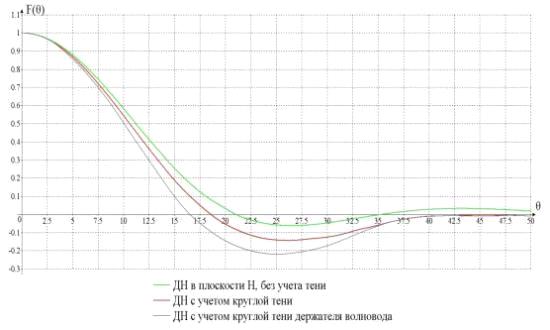Рисунок 5.2. ДН антенны с учетом тени, создаваемой облучателем и