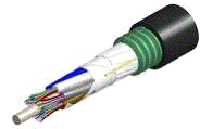 ) Центральная трубка с гидрофобным заполнителем и оптическими волокнами, сгруппированные в пучки или уложенными свободно.