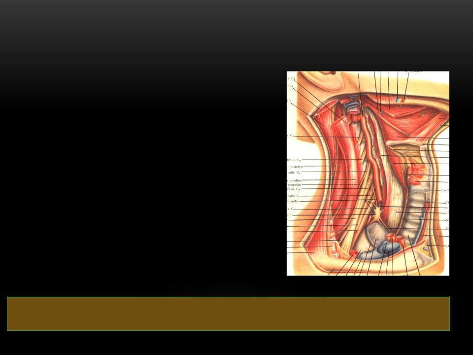 Позади 3-й фасции находится слой жировой клетчатки, содержащей надключичные лимфатические узлы.