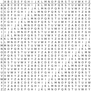 Шифр Виженера состоит из последовательности нескольких шифров Цезаря с различными значениями сдвига. Для шифрования может использоваться таблица алфавитов, называемая квадратом Виженера. Применительно к латинскому алфавиту таблица Виженера составляется из строк по 26 символов, причём каждая следующая строка сдвигается на несколько позиций. Таким образом, в таблице получается 26 различных шифров Цезаря.