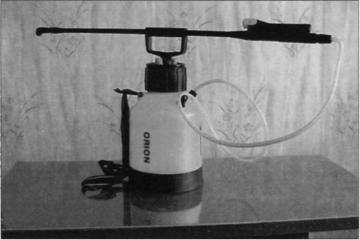 С учетом особенностей обрабатываемых помещений находит примене ние в дезинфектологической практике опрыскиватель «Квазар» (рис. 33) и распылитель такого же наименования (рис. 34). Для нанесения инсекти-