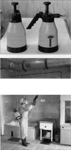 Р и с . 34. П р о в е д е н и е дезин секции с помощью распыли теля «Квазар»