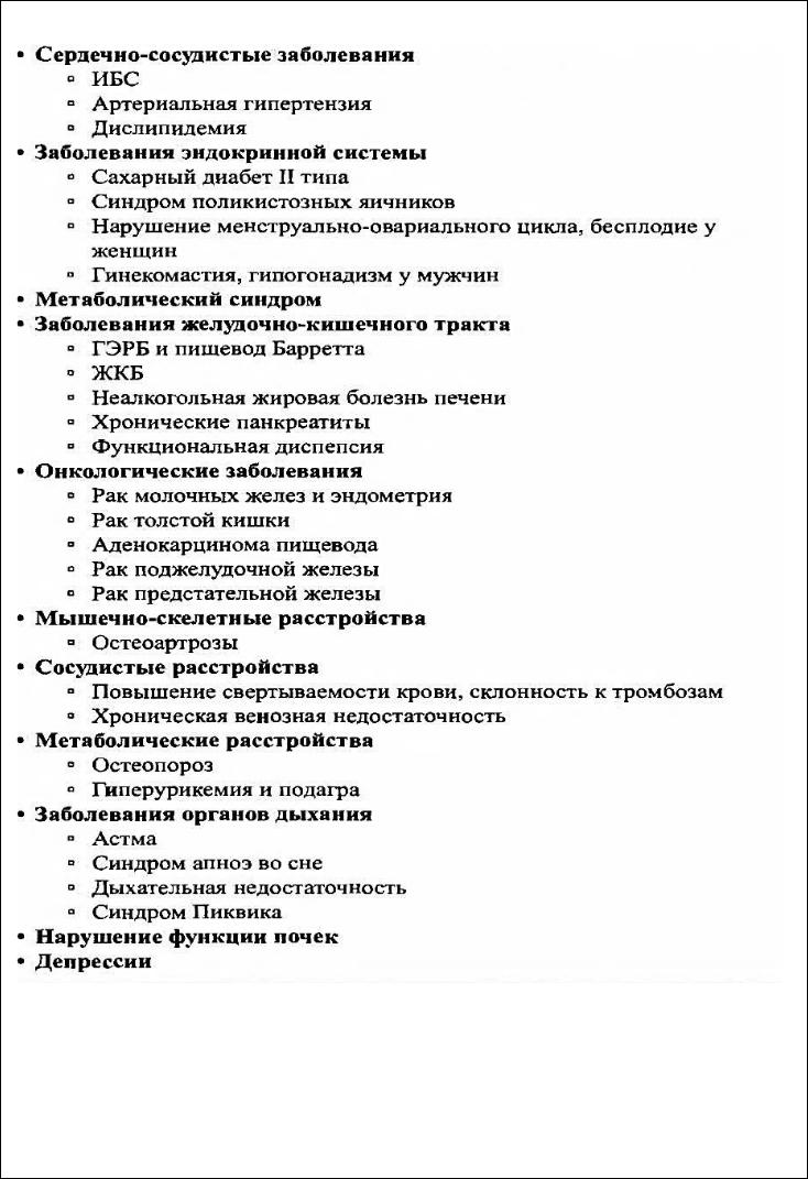 -Ендокринні:ЦД 2, СПКЯ, безпліддѐ, гінекомастіѐ, гіпогонадизм. -Метаболічний синдром (ЦД, подагра, гіпертригліцеридеміѐ) -ШКТ: ЖКХ, панкреатит, герх(баретта)