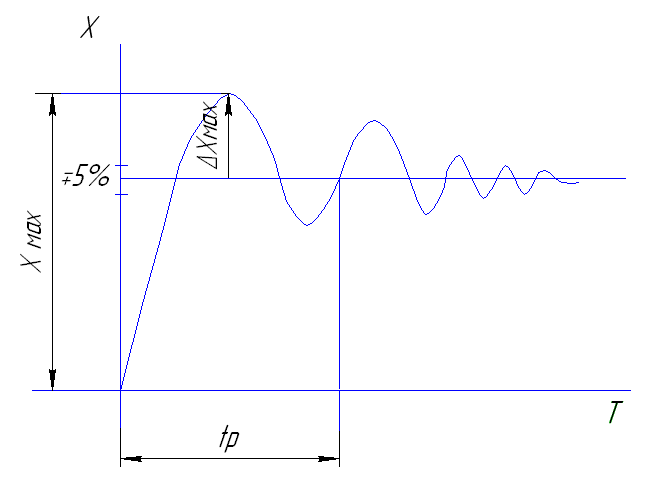 Время регулирования определяется промежутком от одного устойчивого положения до другого. Перерегулирование – отношение 2-х амплитуд 1-ой и 2-ой