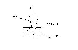 Метод “пуме” –изгот-т спец. образец, на который нанесена пленка → уст-во выстрел-ет образец и при столкновении образца с препятствием пленка отслаивается за счет сил торможения подложки. С целью автоматизации процесса измерения адгезии испол-я метод иглы- стальной или алмазной иглой (диаметр острия 0,003мм) проводят по пов-ти пленки черту, пока пленка не отделится от подложки.