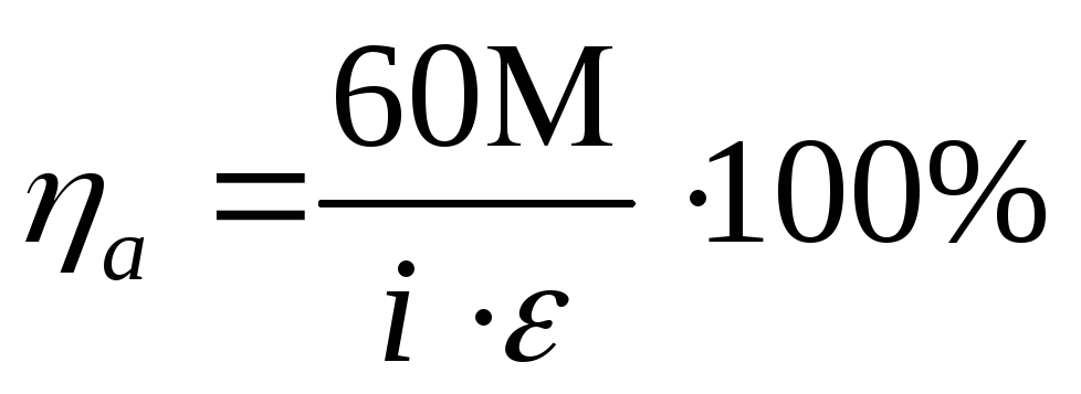 где ρ- плотность материала, г/см3 ; i- плотность тока, А/ см2. На основе удельной производительности М могут быть рассчитаны значения анодного выхода по току ηа: