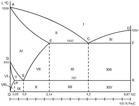 Согласно диаграмме Fe-Fe3C