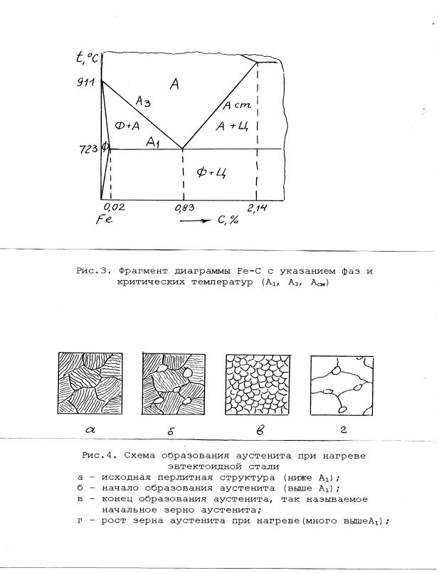 №30 Процесс превращения перлита в аустенит протекает путем зарождения в перлите многочисленных зерен аустенита и последующего их роста. Процесс заканчивается, когда зерна аустенита полностью заполняют объем исходного перлитного зерна (см.рис.4). Размер образовавшихся аустенитных зерен (начальное зерно аустенита) будет намного меньше исходного перлитного зерна.