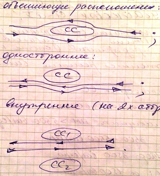 Если объем переработки по направлениям на 1-сторонней СС различаются незначительно, то для повышения поточности выполнения операций во входной горловине ПП и выходной ПО-я могут устр-ся спец. петли и путепроводные развязки.