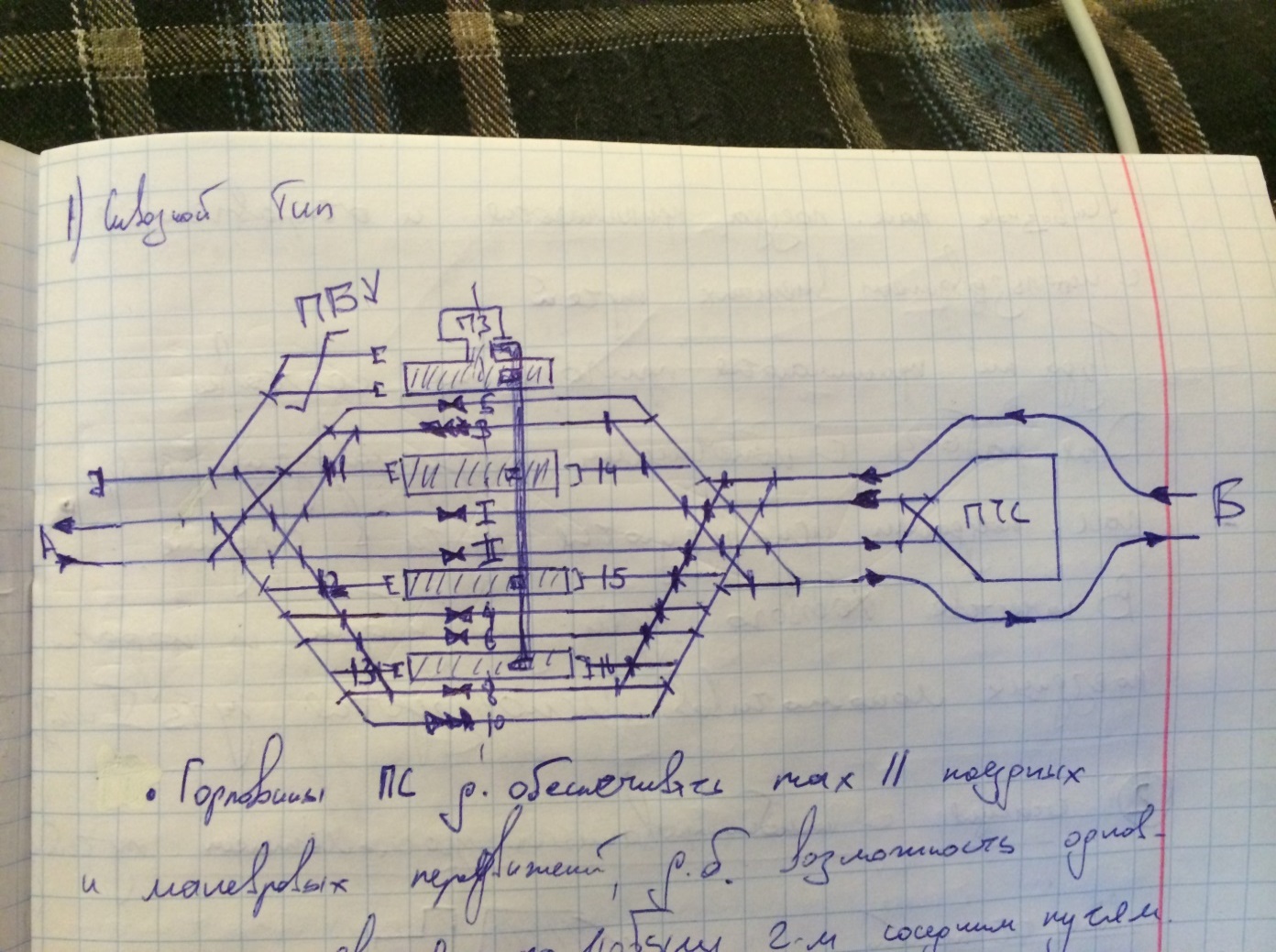 Т.о. при расположении ПТС м/у главными путями в нечетной горловине возникает враждебность маршрутов перестановки с маршрутами приема и отправления пасс поездов, а также пропуска грузовы поездов ч\з ст-ю.